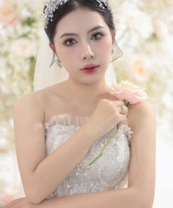 Băng Đô Cô Dâu Cài Hoa Nhẹ Nhàng, Bờm Hoa Cài Tóc – Đá Tròn Mix Phale