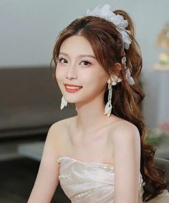 Băng Đô Cô Dâu Cài Hoa Nhẹ Nhàng, Bờm Hoa Cài Tóc – Hoa Voan