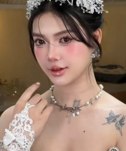 Băng Đô Hoa Đá Đính Ngọc Trai Cao Cấp Kèm Bông Tai
