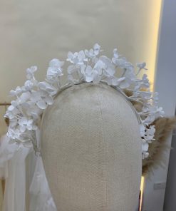 Băng Đô Hoa Nhí Trắng Mix Lá Trắng