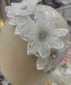 Băng Đô Hoa Ren Trắng Đính Nhụy Đá