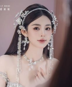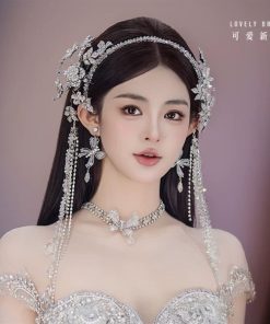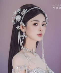Vòng Cổ Đính Hoa Dành Cho Cô Dâu, Choker Hoa, Phụ Kiện Cưới – Dây Ngọc Đính Hoa Vải Mix Lông Vũ