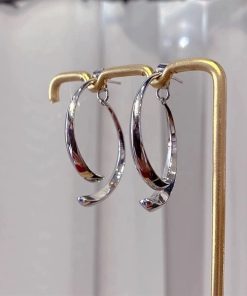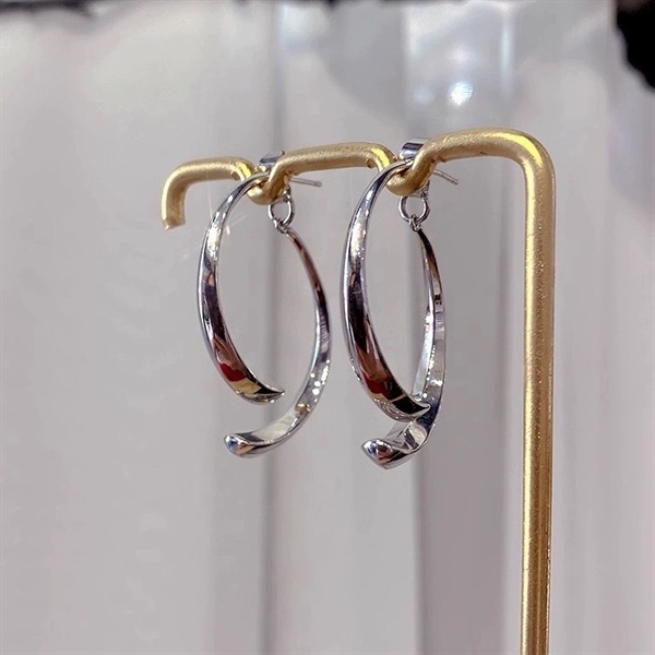 Bông Tai To Màu Trắng Bạc, Bông Tai Cô Dâu, Bông Tai Concept – Bông Tai Nửa Vòng Tròn Treo Trước Sau Kim Loại Phụ Kiện Cưới