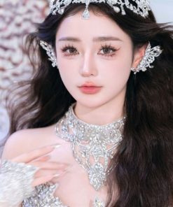 Vòng Cổ Đính Hoa Dành Cho Cô Dâu, Choker Hoa, Phụ Kiện Cưới – Dây Ngọc Đính Hoa Vải Mix Lông Vũ