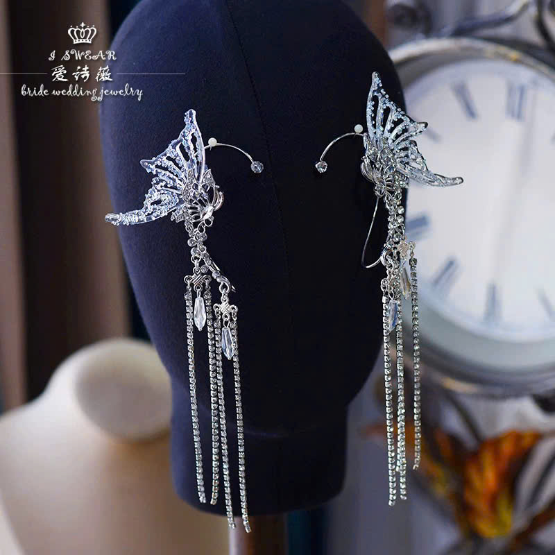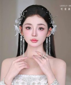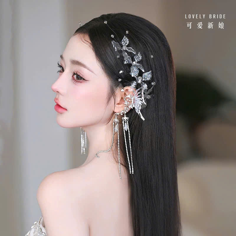 Set Cài Hồ Điệp Trong Suốt Đa Sắc Tua Rua Phale Kèm Băng Đô Lưới