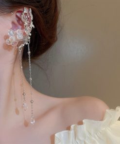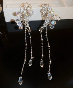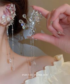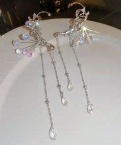 Cài Móc Vành Tai – Móc Vành Tai Hồ Điệp Mix Đá Pha Lê Tua Rua