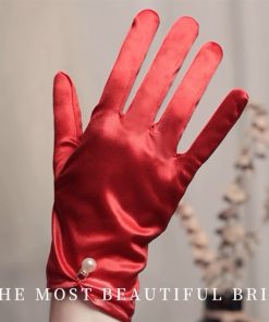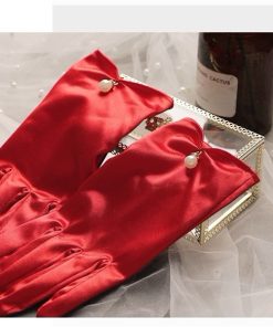 Găng Tay Đỏ Ngắn 23cm – đỏ đính hạt trai