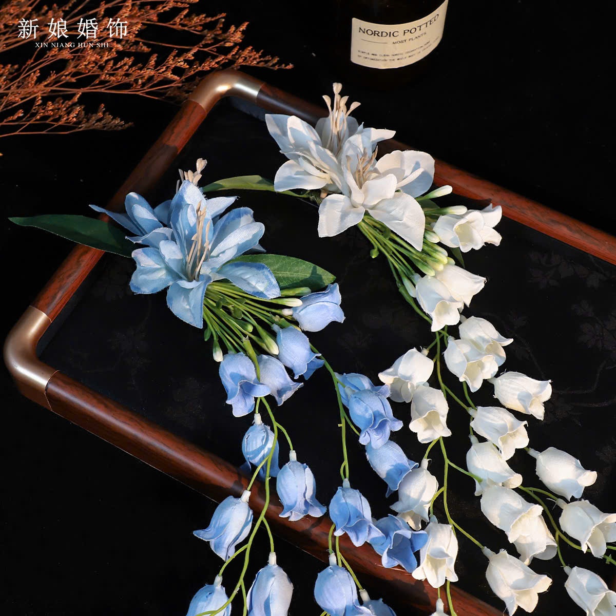 Kẹp Hoa Ly Mix Hoa Hoa Chuông Rơi – Xanh