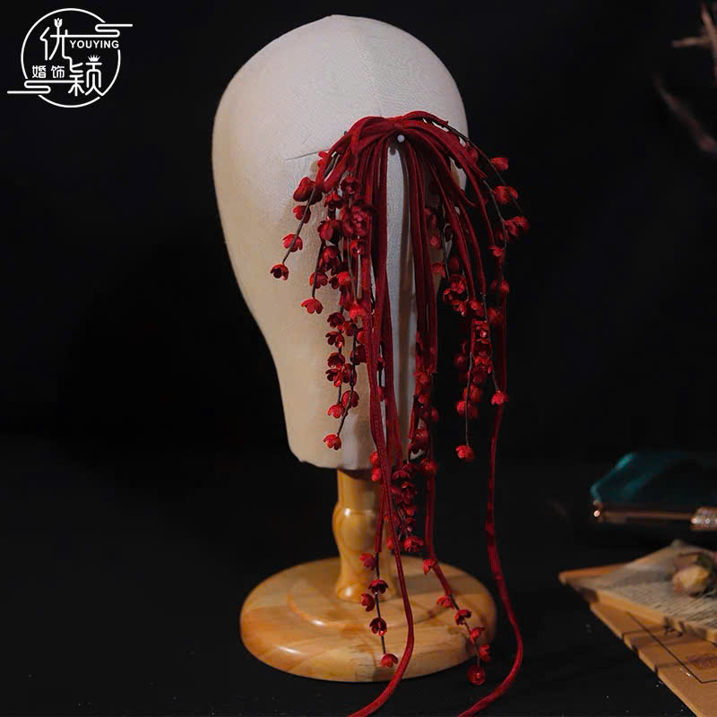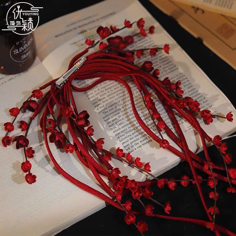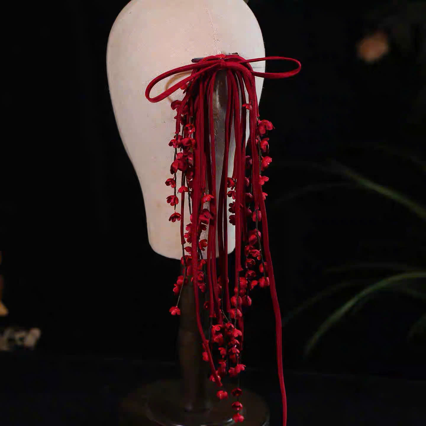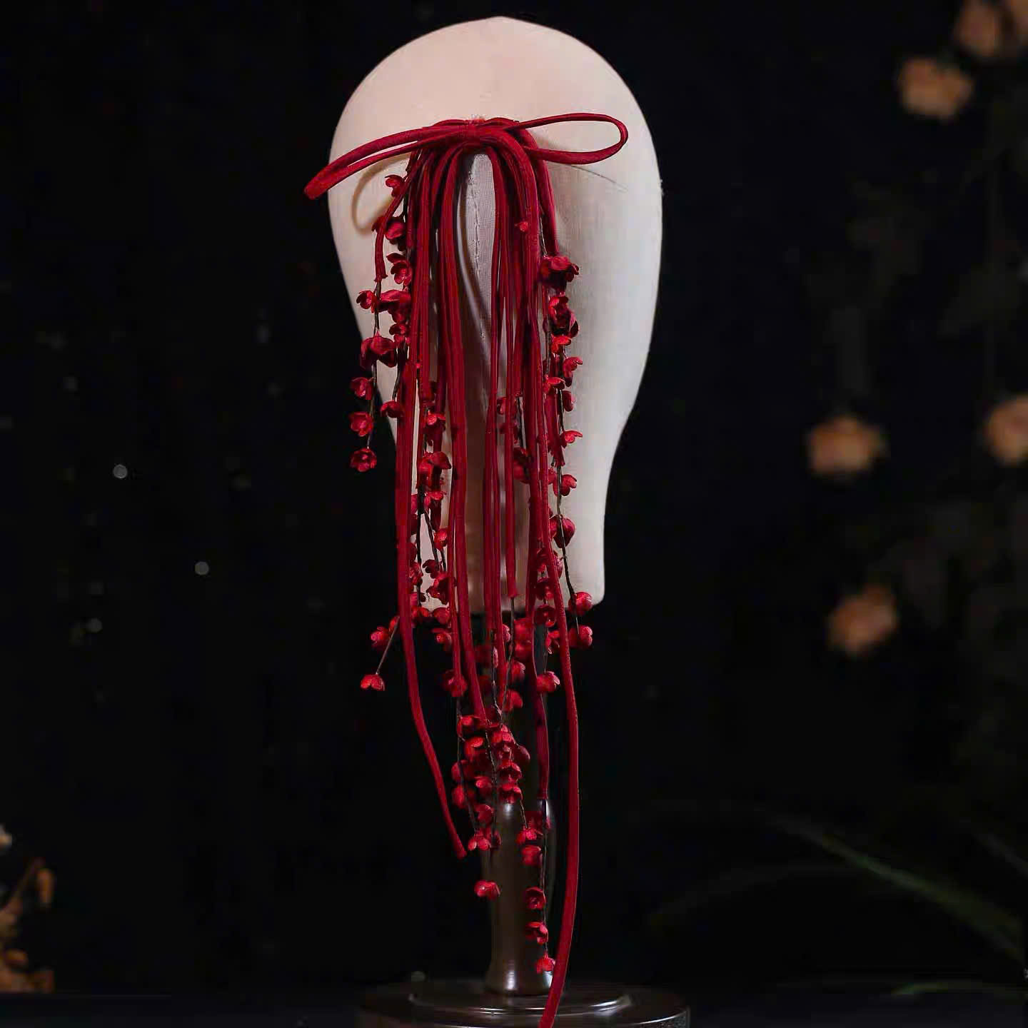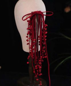 Kẹp Nơ Hoa Linh Lan Tua Rua – Đỏ