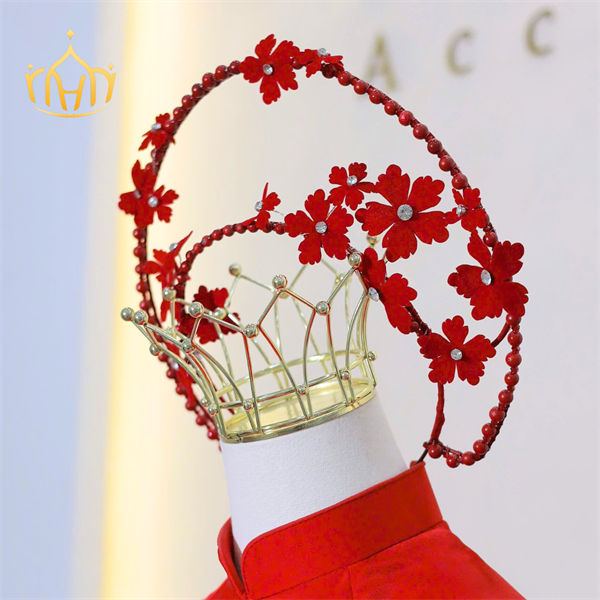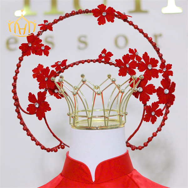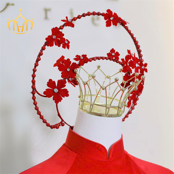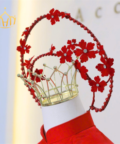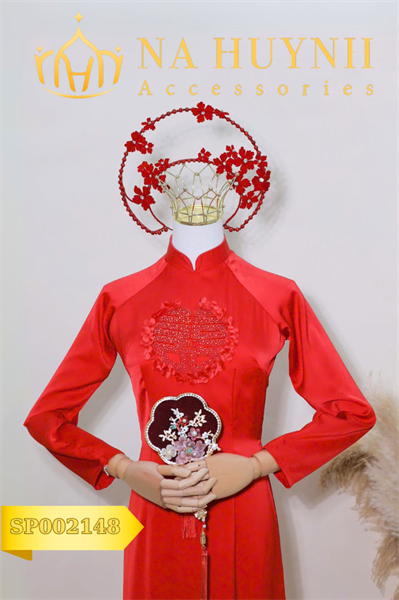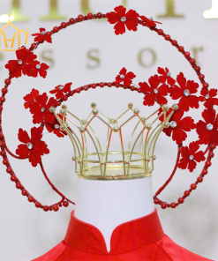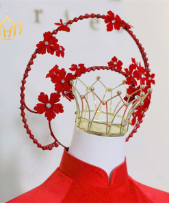 Mấn Khung Kim Loại Áo Dài Cô Dâu Màu Đỏ – Mấn Khung Viền Ngọc Trai Đính Hoa Sáp Đỏ