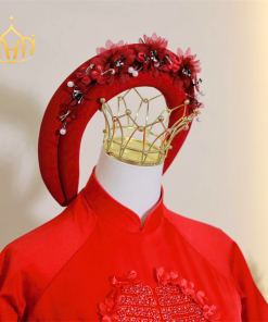 Mấn Vải Áo Dài Cô Dâu Màu Đỏ – Mấn 2 Tầng Đỏ Đô Đính Hoa