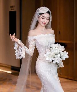 VOAN TRẮNG DÀI 2 TẦNG MIX BỜM HOA ĐÍNH HOA RƠI 35CM 300CM PHỤ KIỆN CÔ DÂU PHỤ KIỆN CHỤP HÌNH –