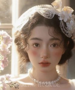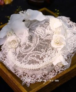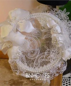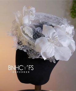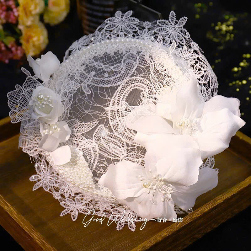 Mũ Ren Trắng Đính Hoa Phong Cách Retro –