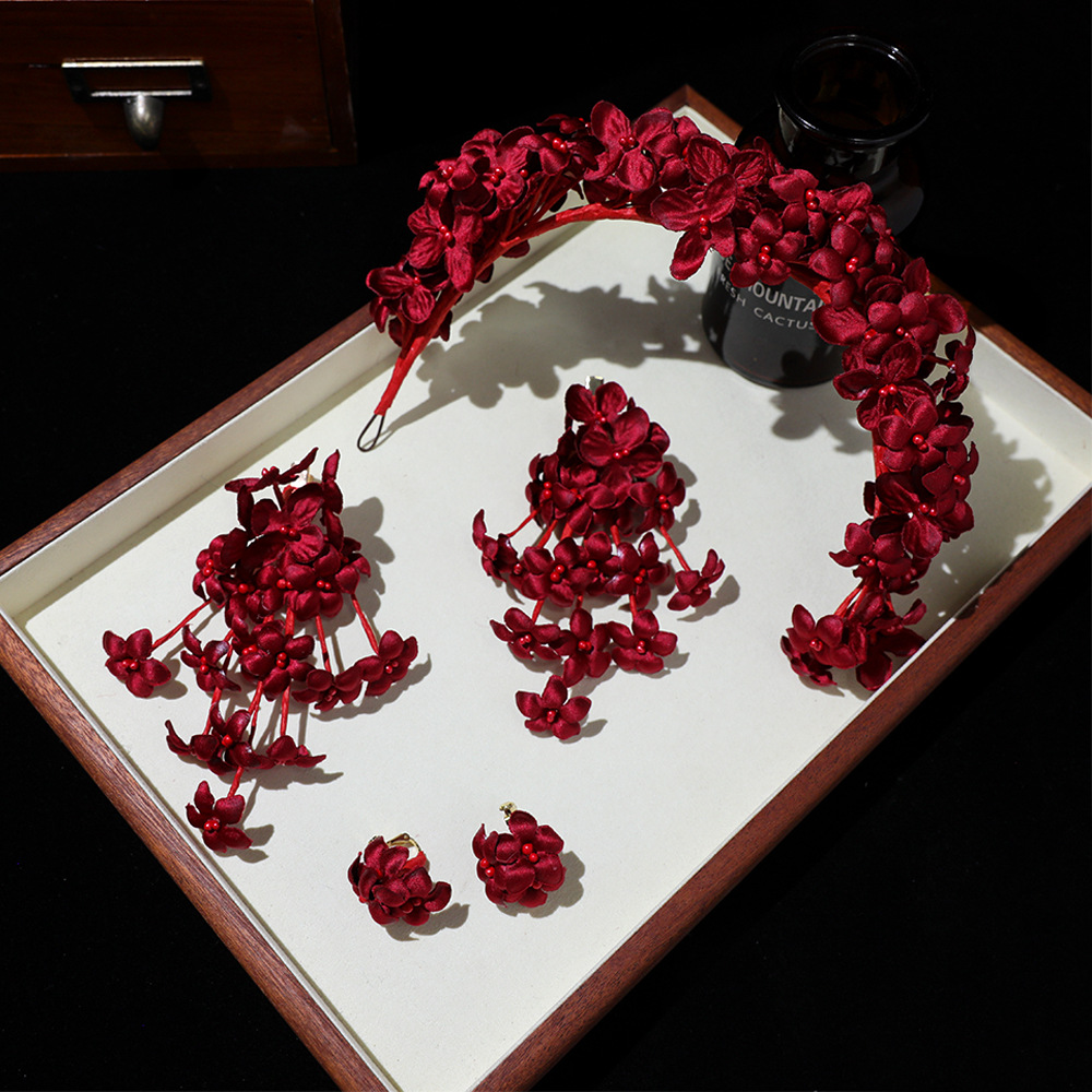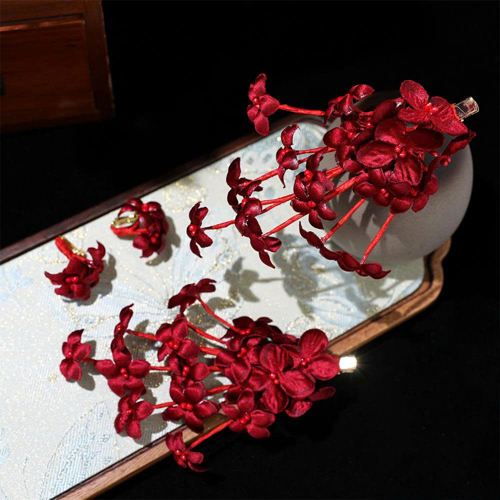 Set 1 Băng Đô Hoa, 2 Kẹp Hoa Kèm Bông Tai Màu Đỏ