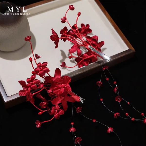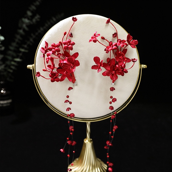 Set 2 Kẹp Hoa Màu Đỏ – Hoa 5 Cánh Có Tua Rua