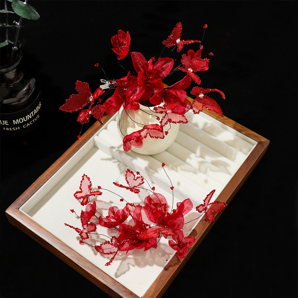 Set 2 Món Kẹp Hoa Voan Mix Hồ Điệp Phale – Đỏ