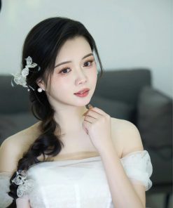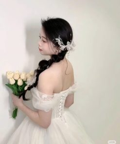 Set 3 Món Cài Hoa Ren Đính Kim Sa Pha Lê Mix Lông Vũ –
