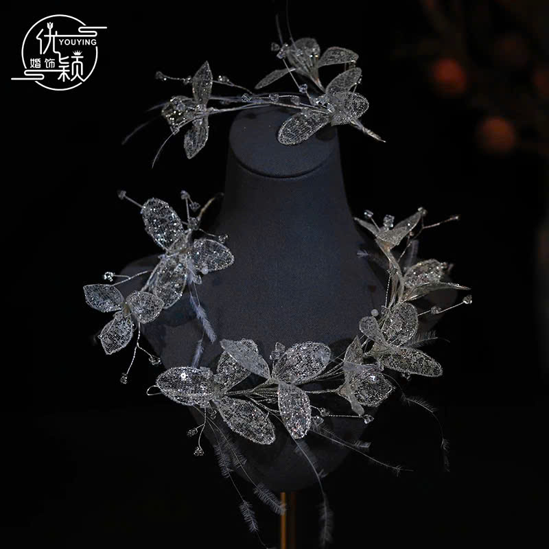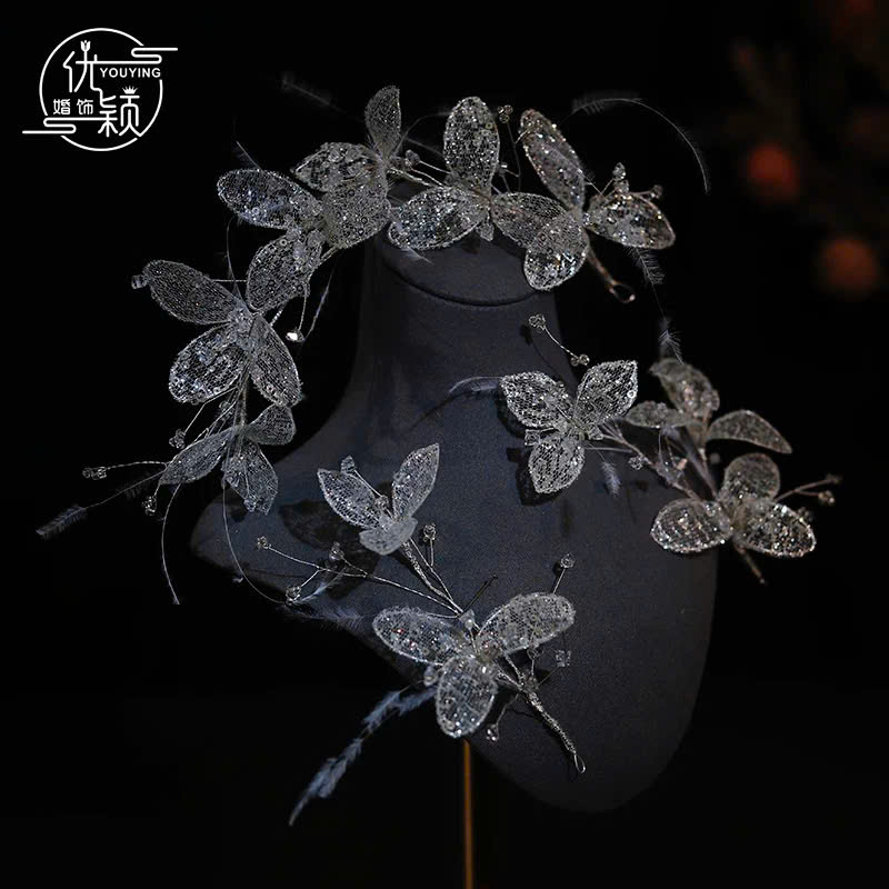 Set Cài Hồ Điệp Trong Suốt Đa Sắc Tua Rua Phale Kèm Băng Đô Lưới
