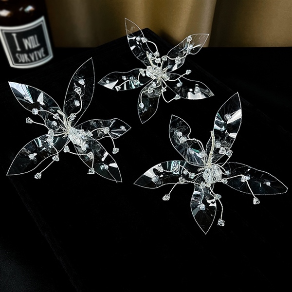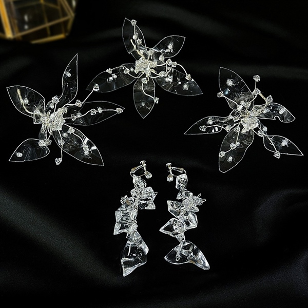 Set 3 Món Cài Hoa Trong Suốt Mix Đá Phale Kèm Bông Tai –
