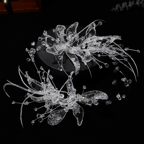 Set Cài Hồ Điệp Trong Suốt Đa Sắc Tua Rua Phale Kèm Băng Đô Lưới