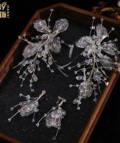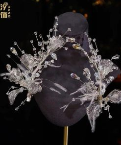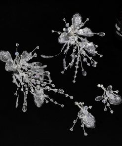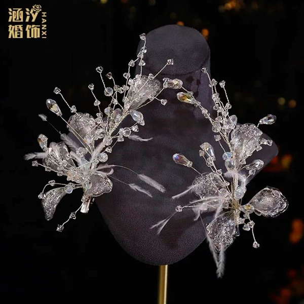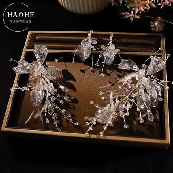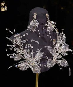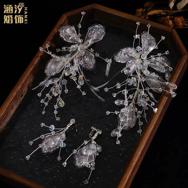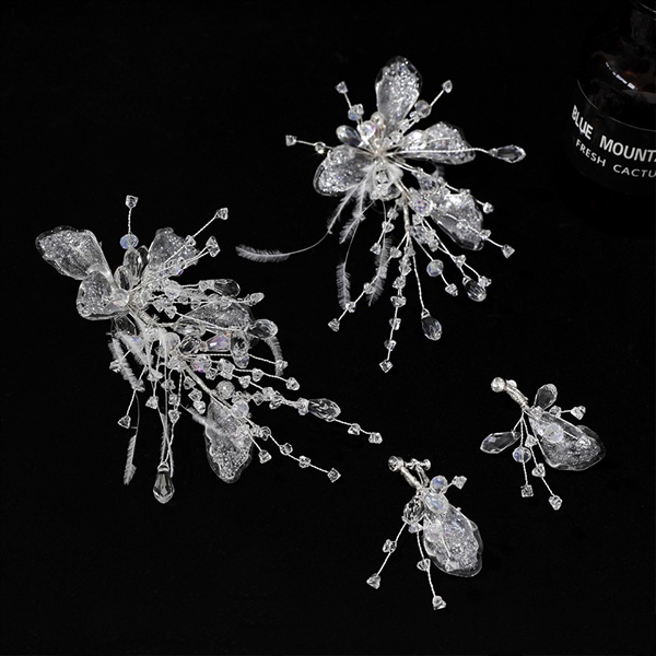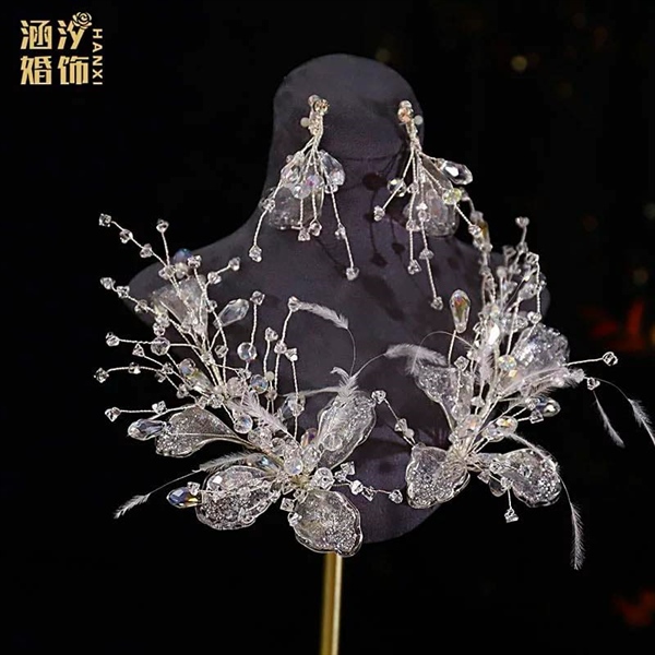 Set Cài Pha Lê Mix Lông Vũ Kèm Bông Tai –