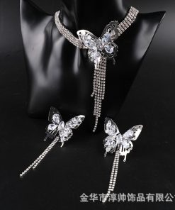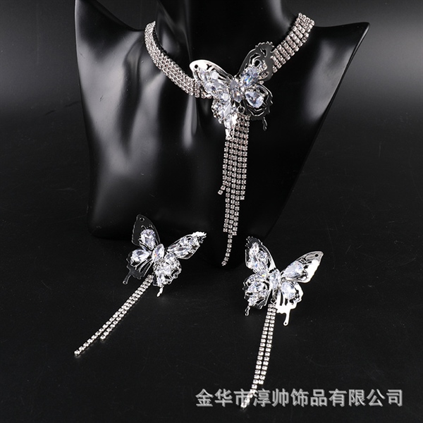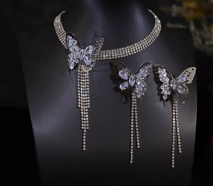 Set Choker Và Bông Tai Hồ Điệp Đá Tua Rua –