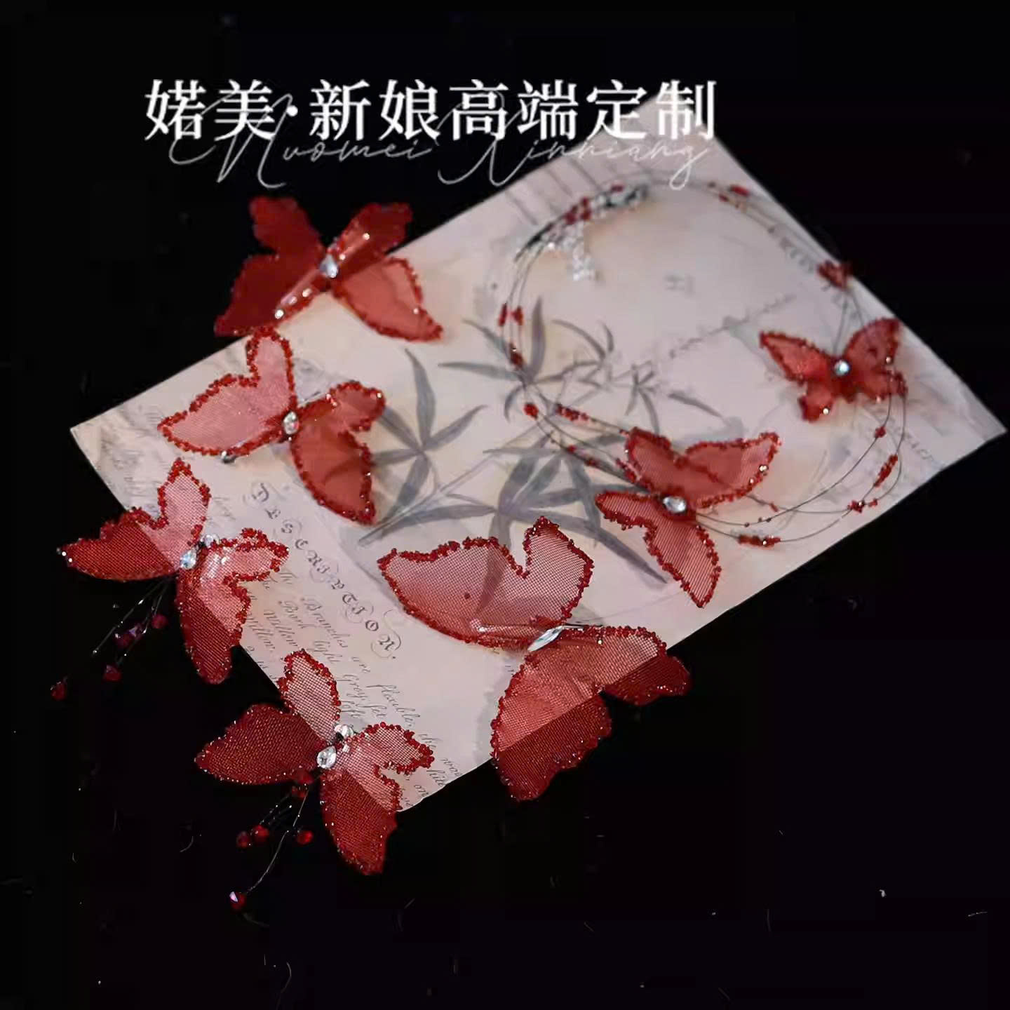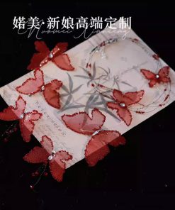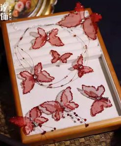 Set Kẹp Hồ Điệp Viền Đá Nhũ Kèm Choker Và Bông Tai – Đỏ