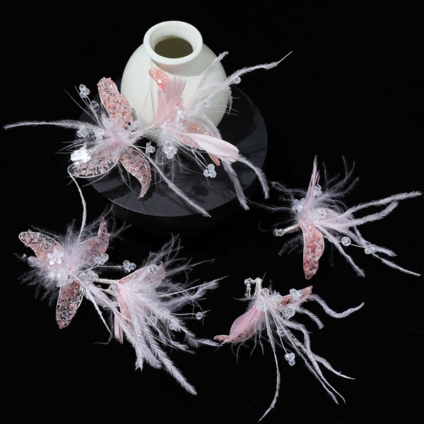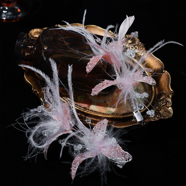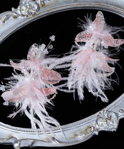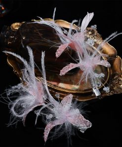 Set Ốp Đá Phale – Hoa Pha Lê Màu Hồng Pastel Mix Lông Vũ Kèm Bông Tai