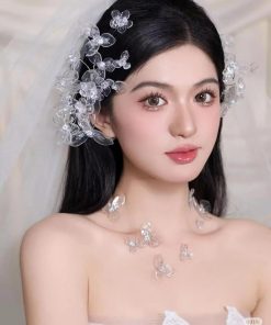 Set Cài Hồ Điệp Trong Suốt Đa Sắc Tua Rua Phale Kèm Băng Đô Lưới