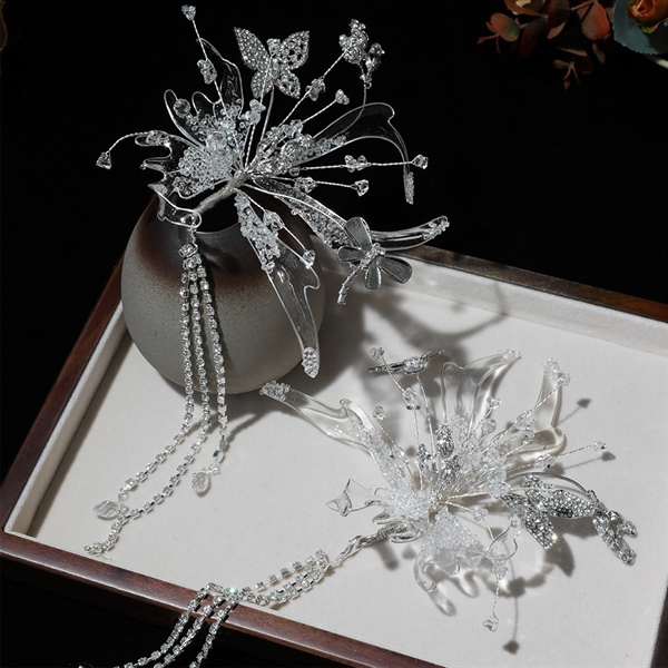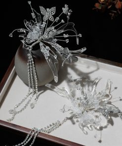Băng Đô Hoa Đá Đính Ngọc Trai Cao Cấp Kèm Bông Tai