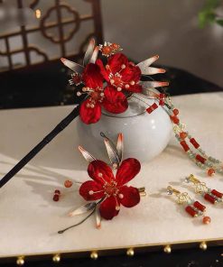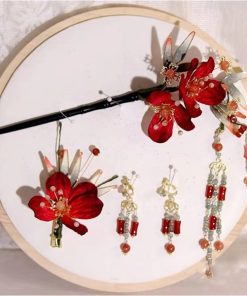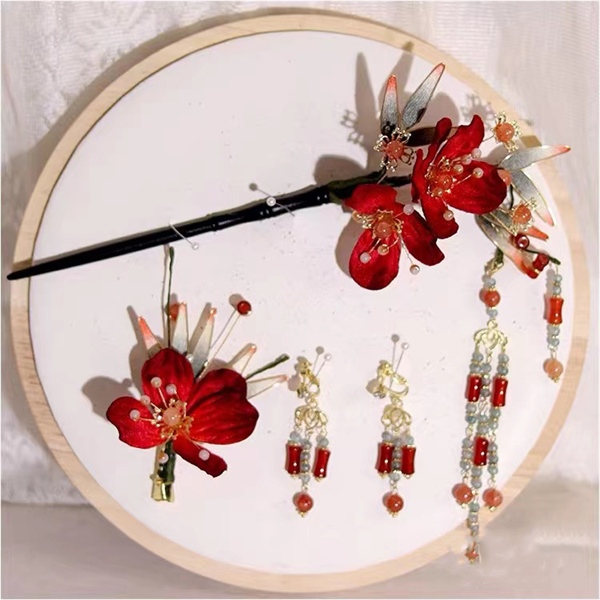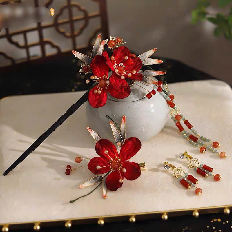Set Trâm Đỏ 4 Món Kèm Bông Tai –