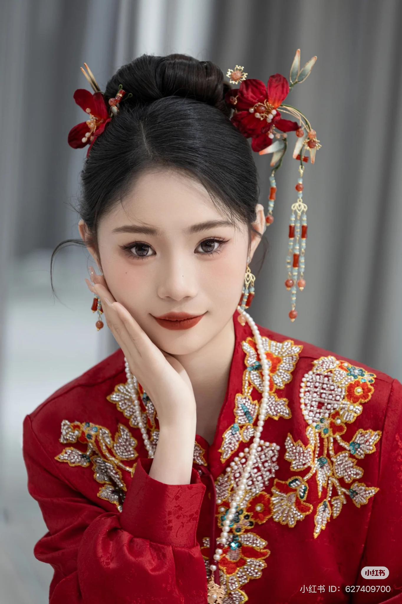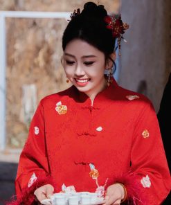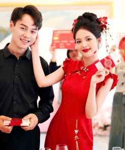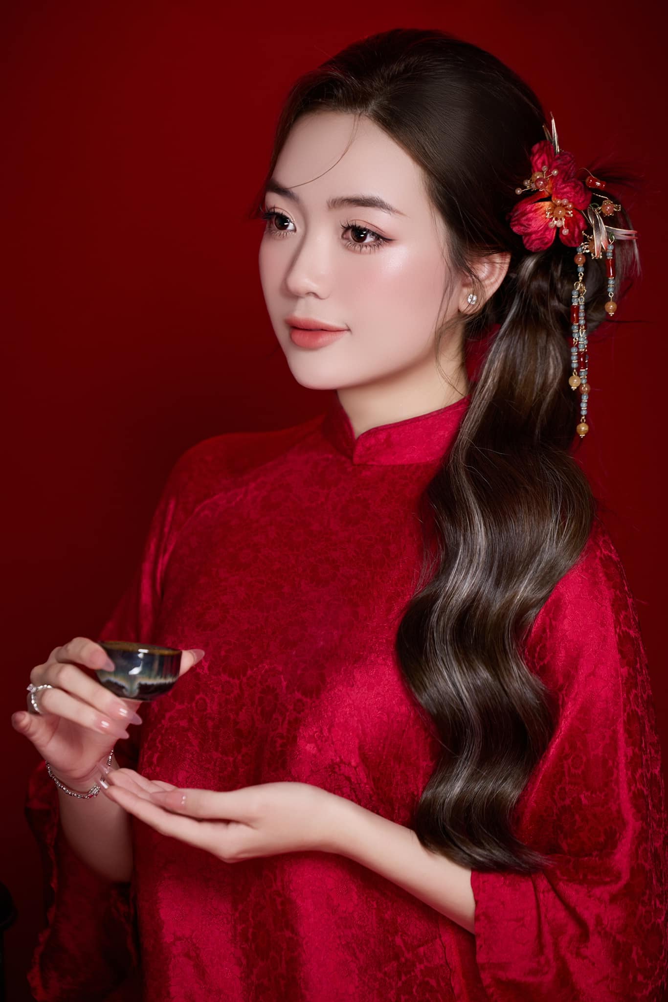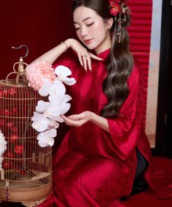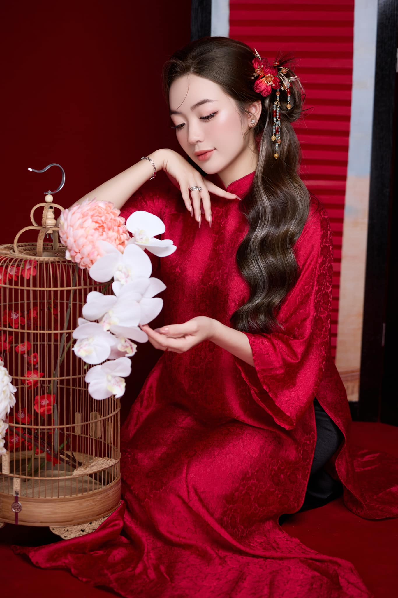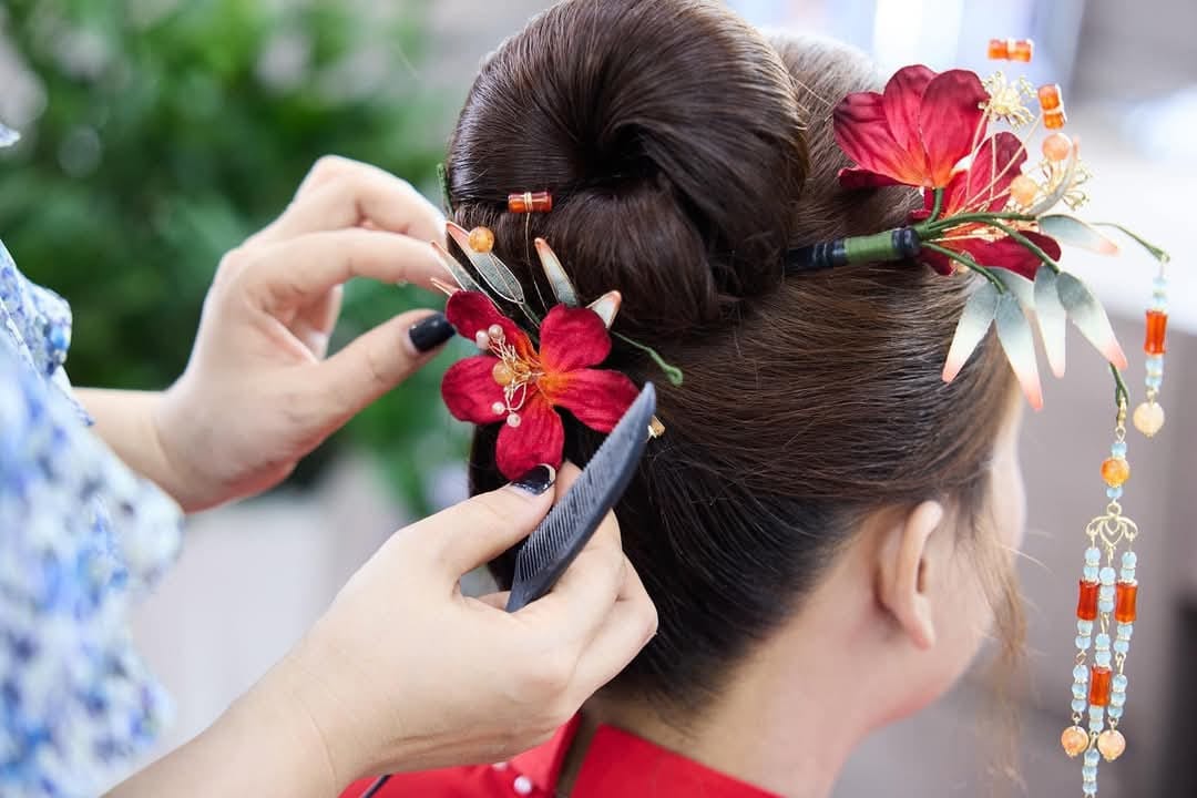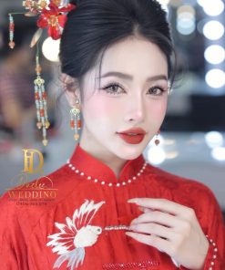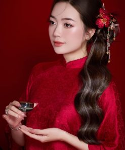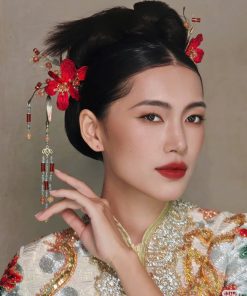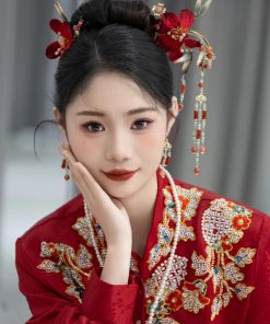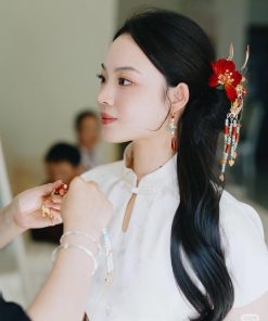 Set Trâm 3 Món Kèm Bông Tai, Trâm Cài Tóc Cô Dâu, Trâm Áo Dài, Phụ Kiện Cưới – Đỏ