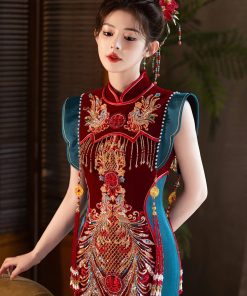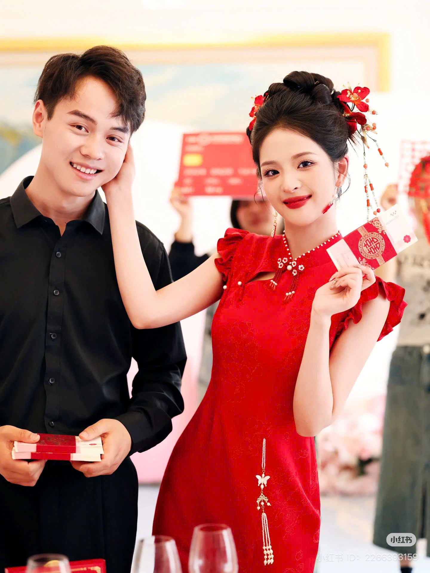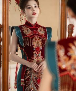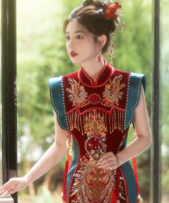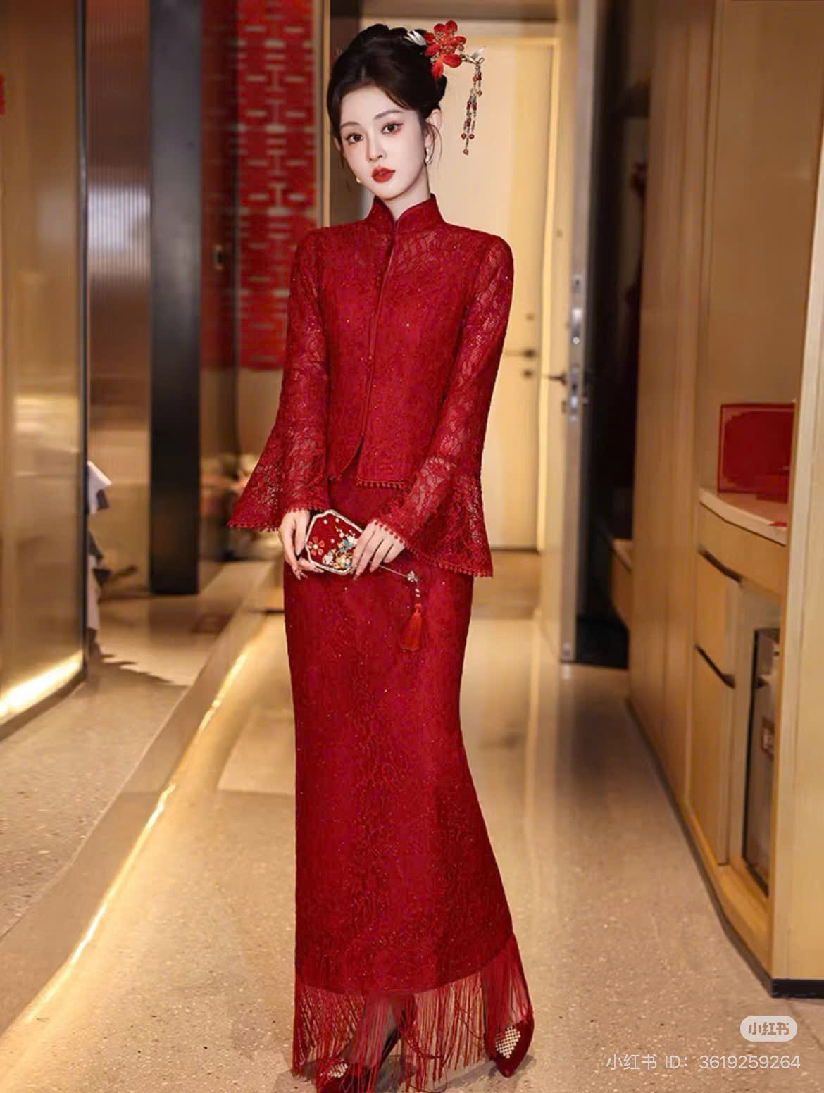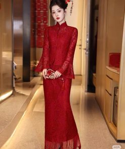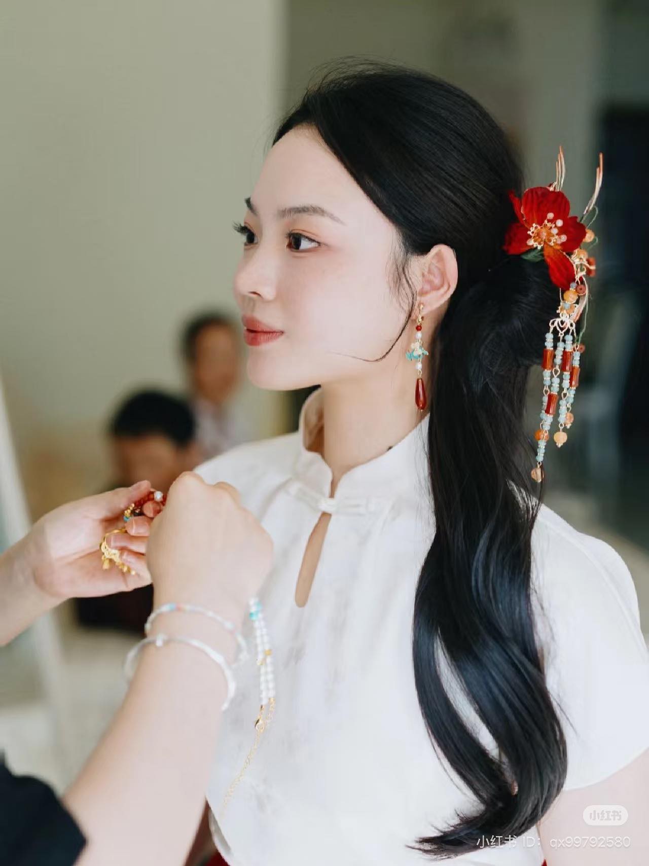 Set Trâm 3 Món Kèm Bông Tai, Trâm Cài Tóc Cô Dâu, Trâm Áo Dài, Phụ Kiện Cưới – Đỏ