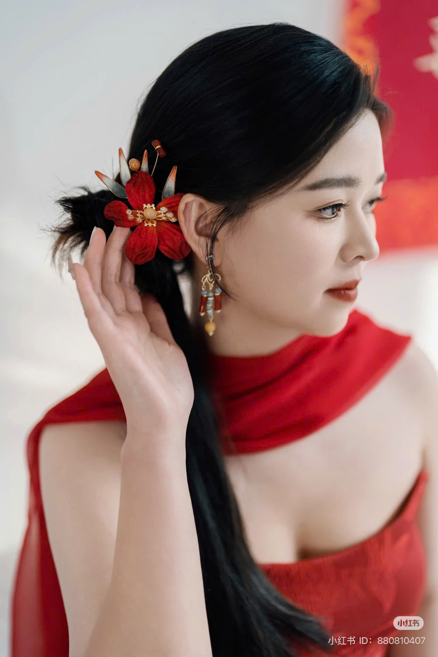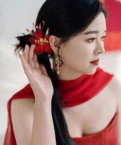 Set Trâm Chim Én Giấy Cắt Đỏ, Phụ Kiện Cô Dâu Màu Đỏ, Phụ Kiện Cưới – Không Bông Tai