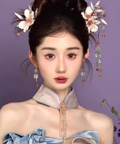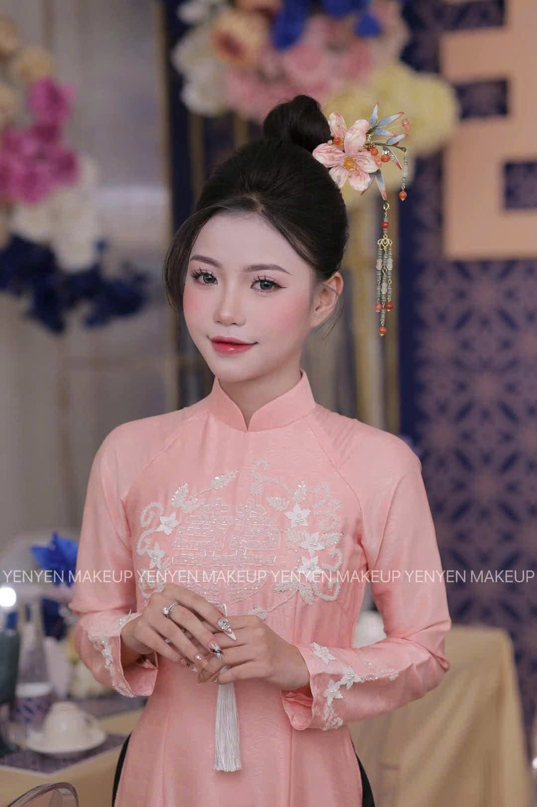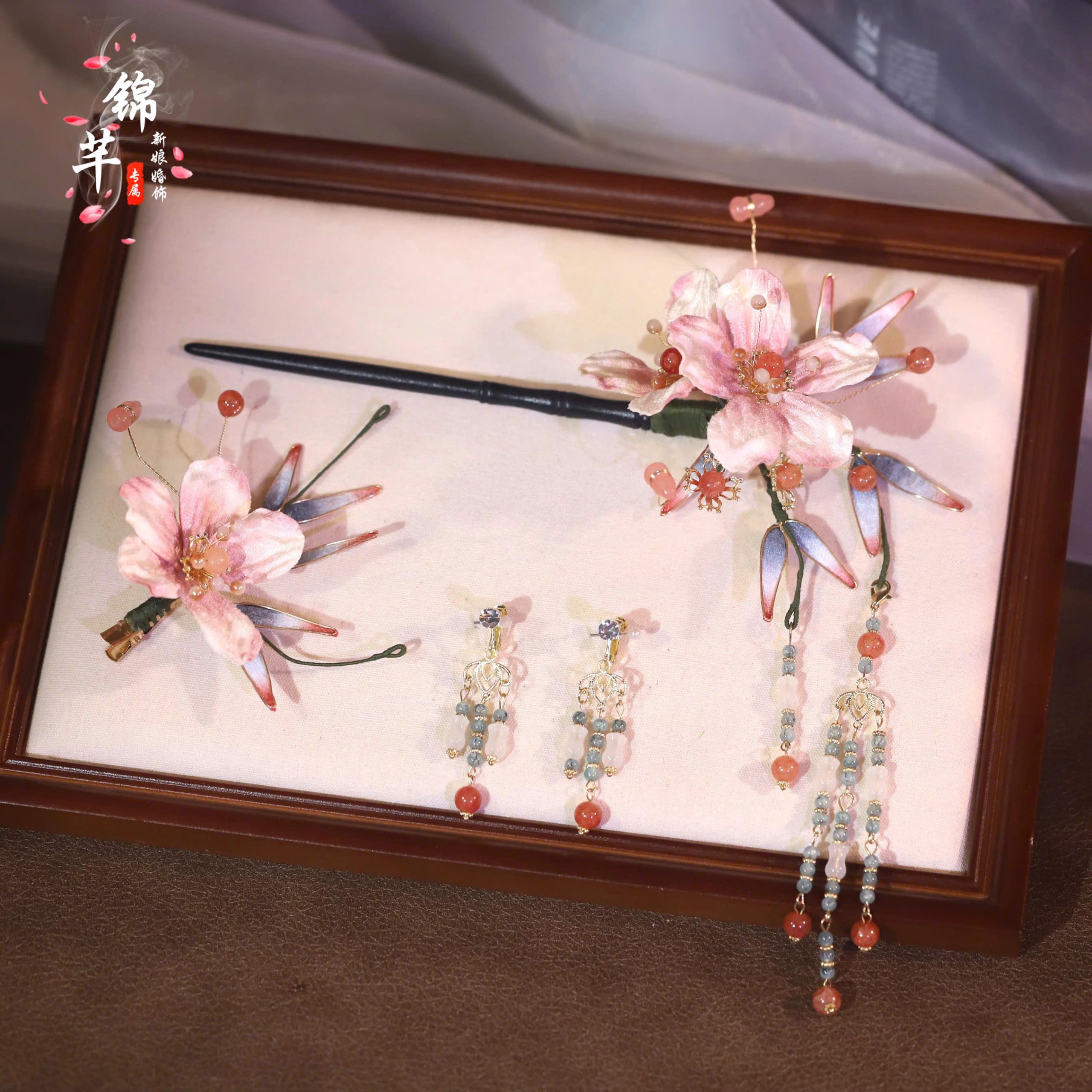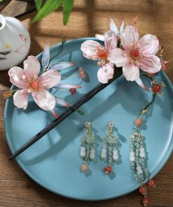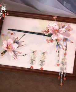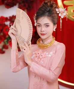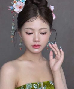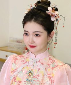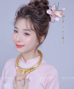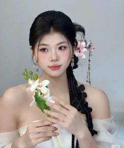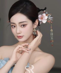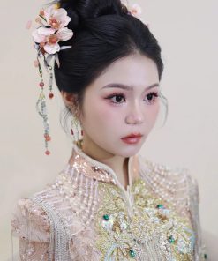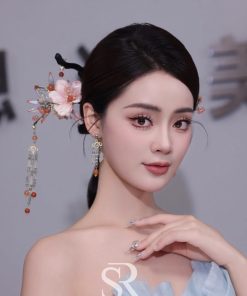 Set Trâm 3 Món Kèm Bông Tai, Trâm Cài Tóc Cô Dâu, Trâm Áo Dài, Phụ Kiện Cưới – Hồng