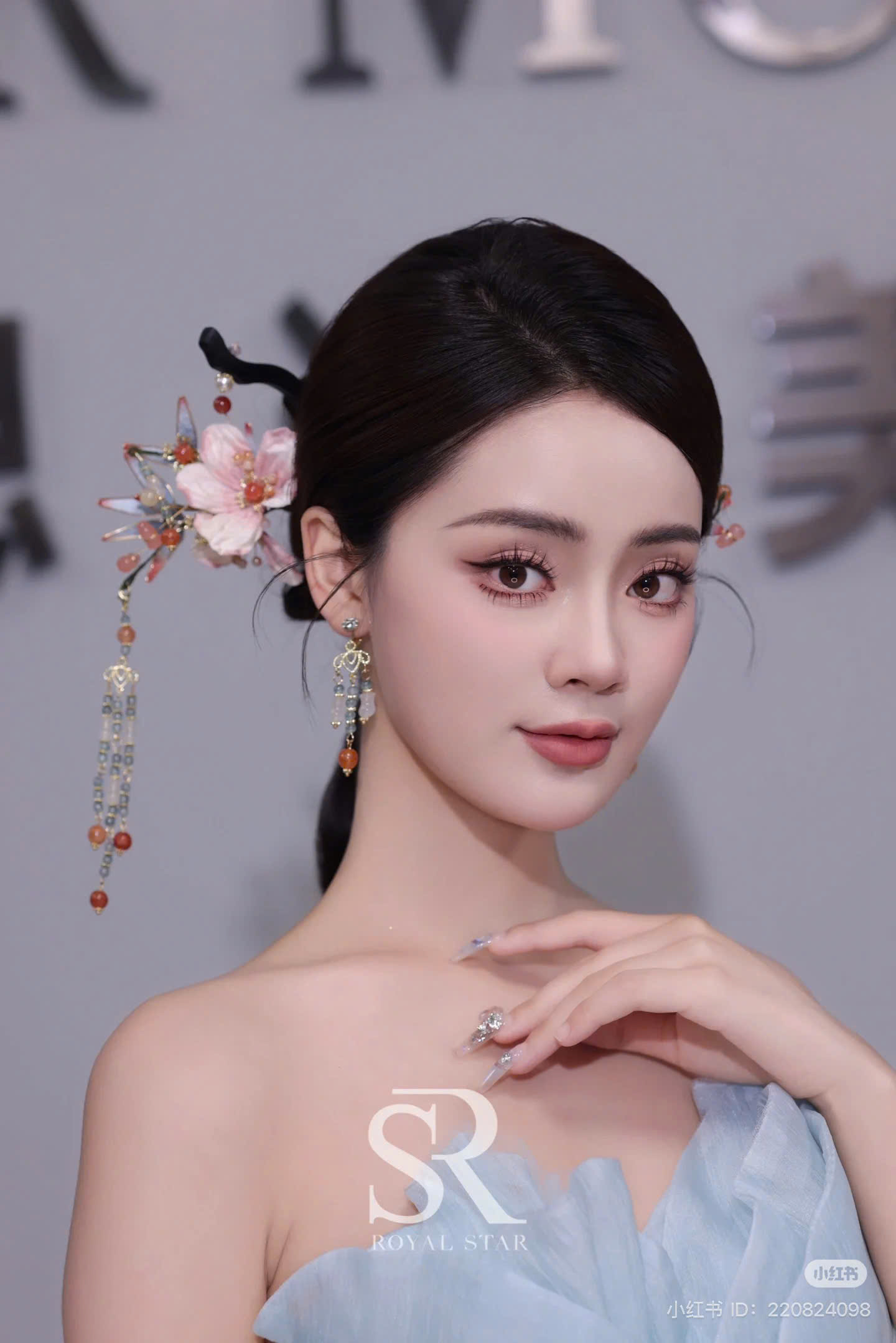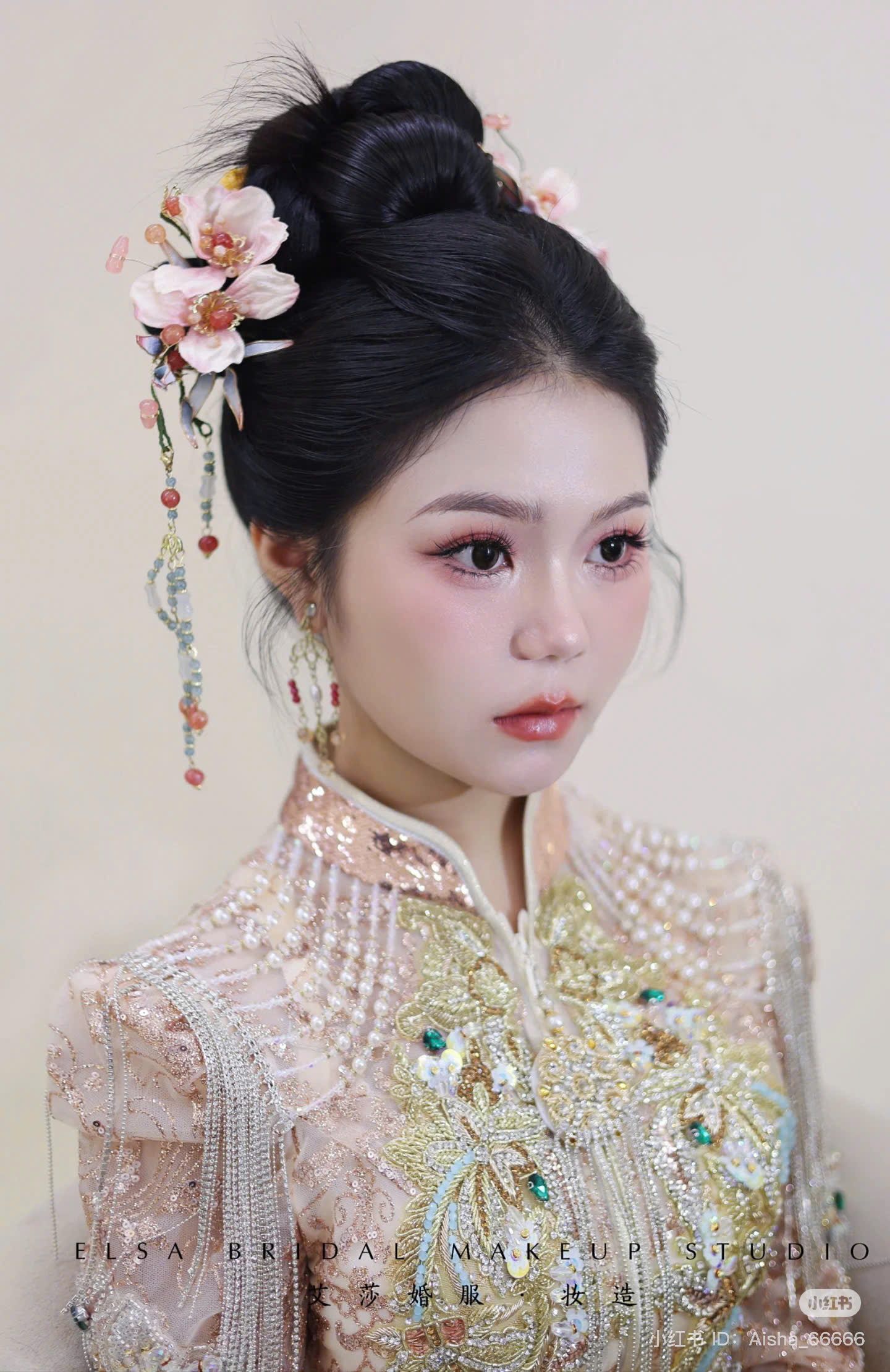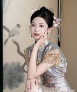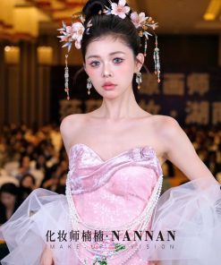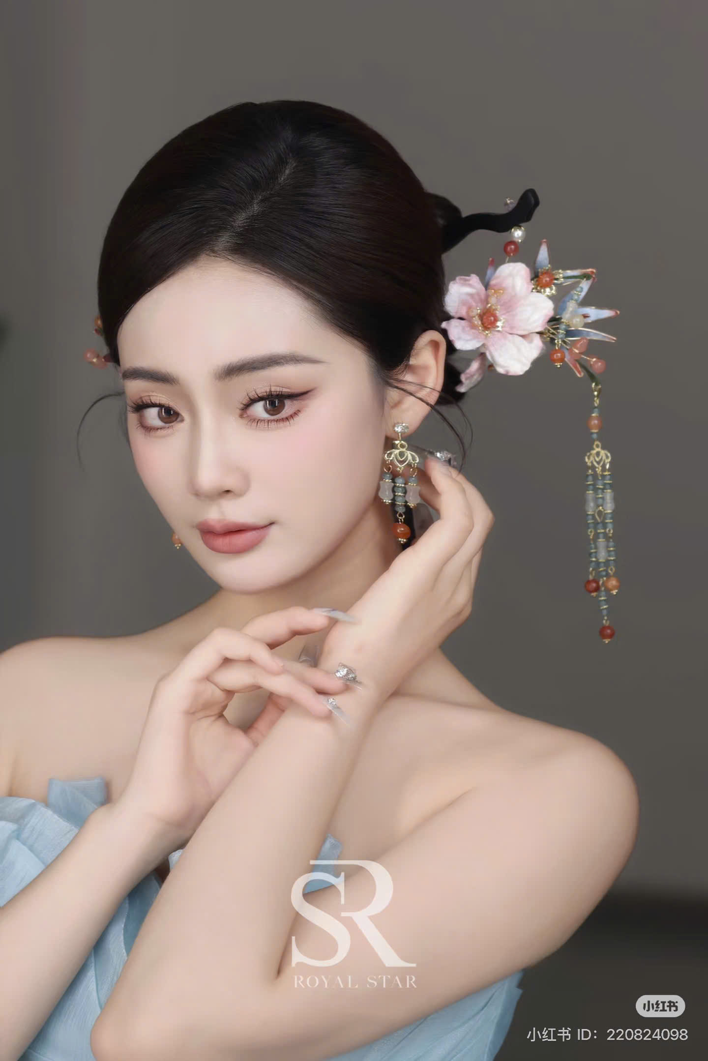 Set Trâm 3 Món Kèm Bông Tai, Trâm Cài Tóc Cô Dâu, Trâm Áo Dài, Phụ Kiện Cưới – Hồng