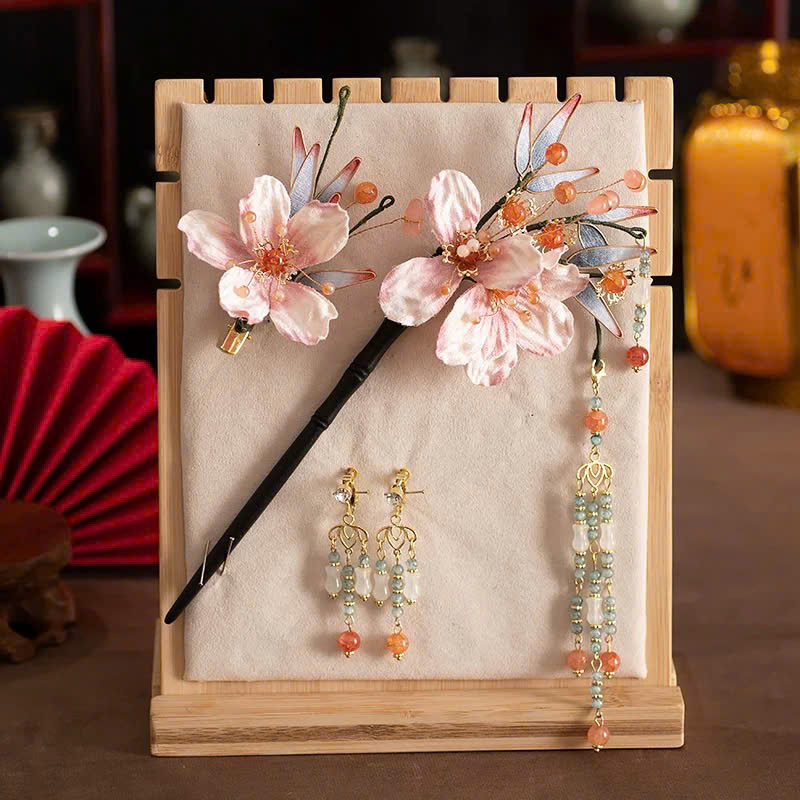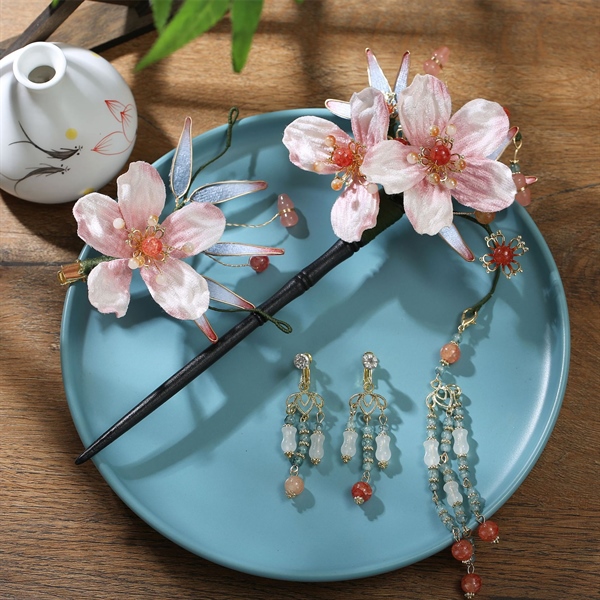Set Trâm Đỏ 4 Món Kèm Bông Tai –