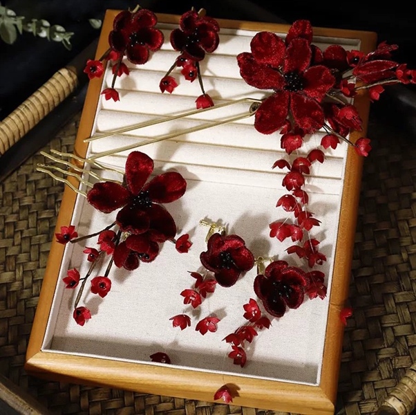 Set Trâm Đỏ 4 Món Kèm Bông Tai –