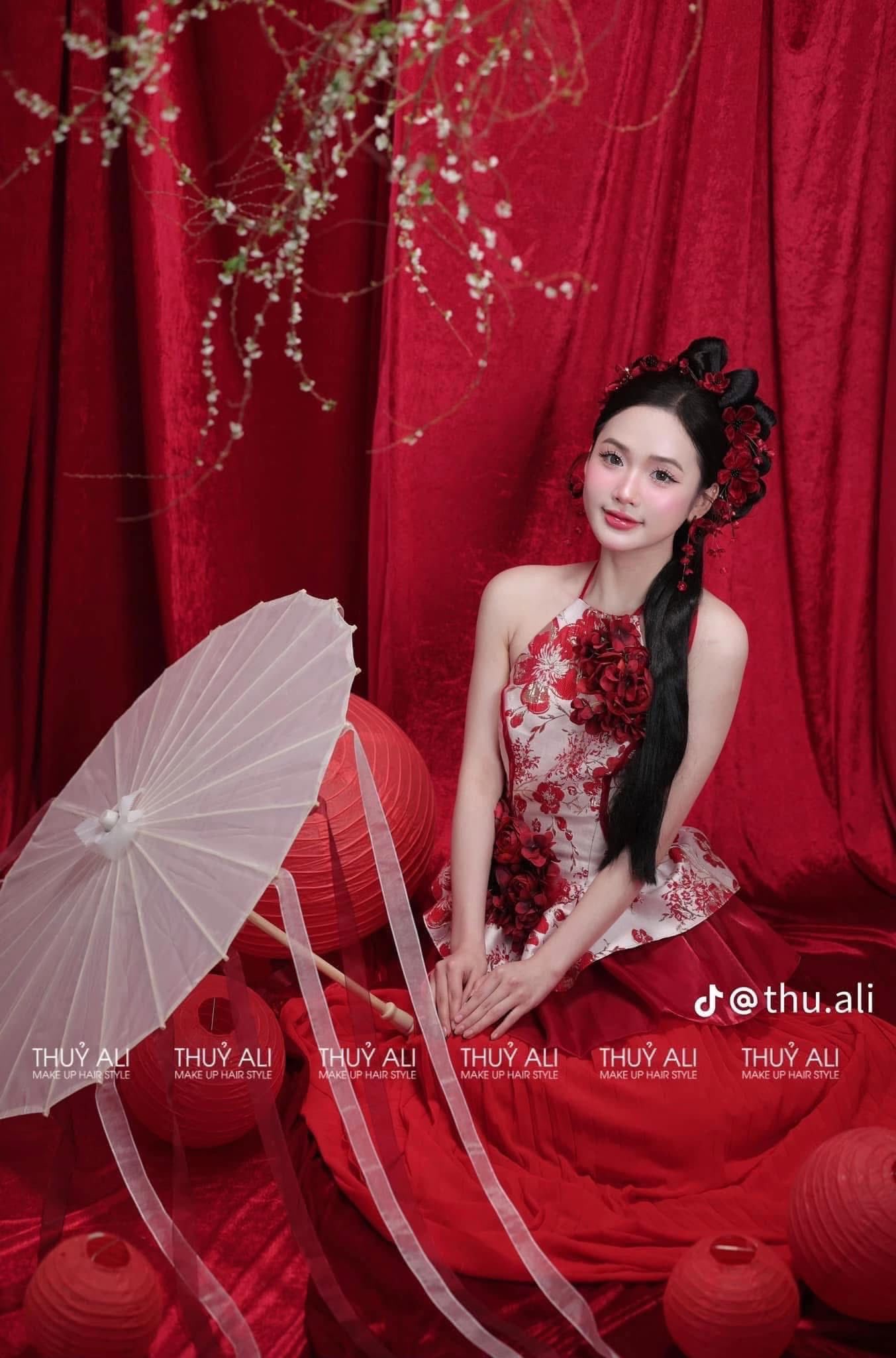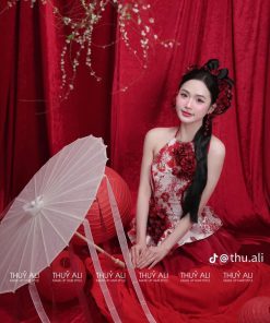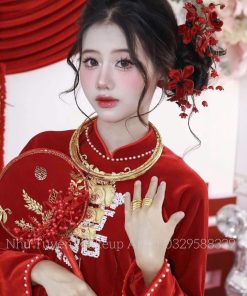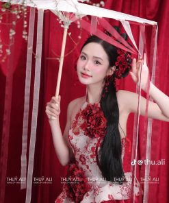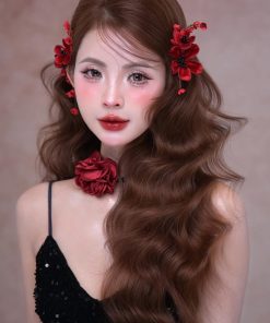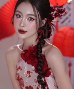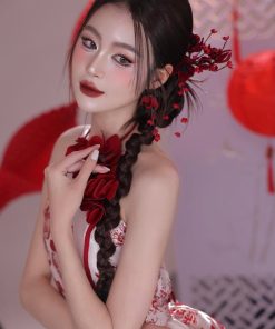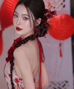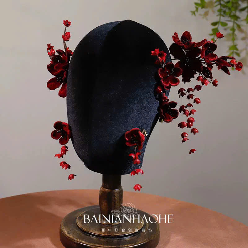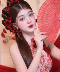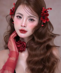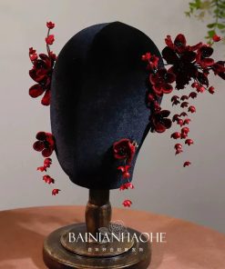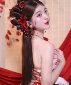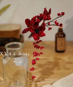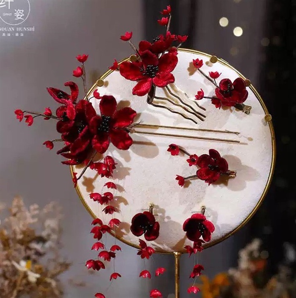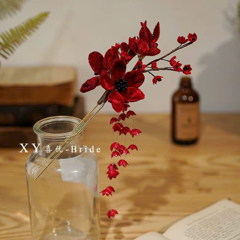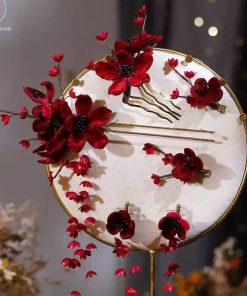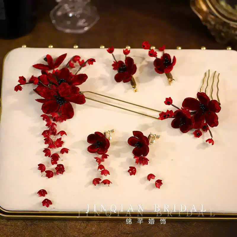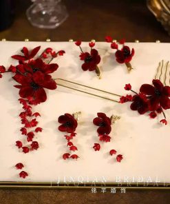 Set Trâm Chim Én Giấy Cắt Đỏ, Phụ Kiện Cô Dâu Màu Đỏ, Phụ Kiện Cưới – Không Bông Tai