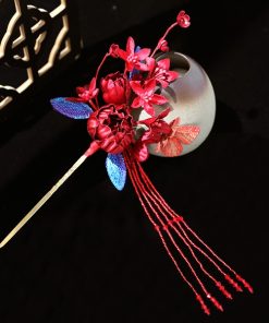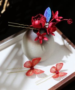 Set Trâm Chim Én Giấy Cắt Đỏ, Phụ Kiện Cô Dâu Màu Đỏ, Phụ Kiện Cưới – Không Bông Tai