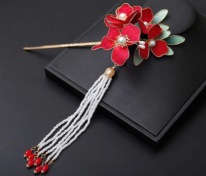 Set Trâm Đỏ 4 Món Kèm Bông Tai –