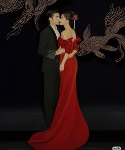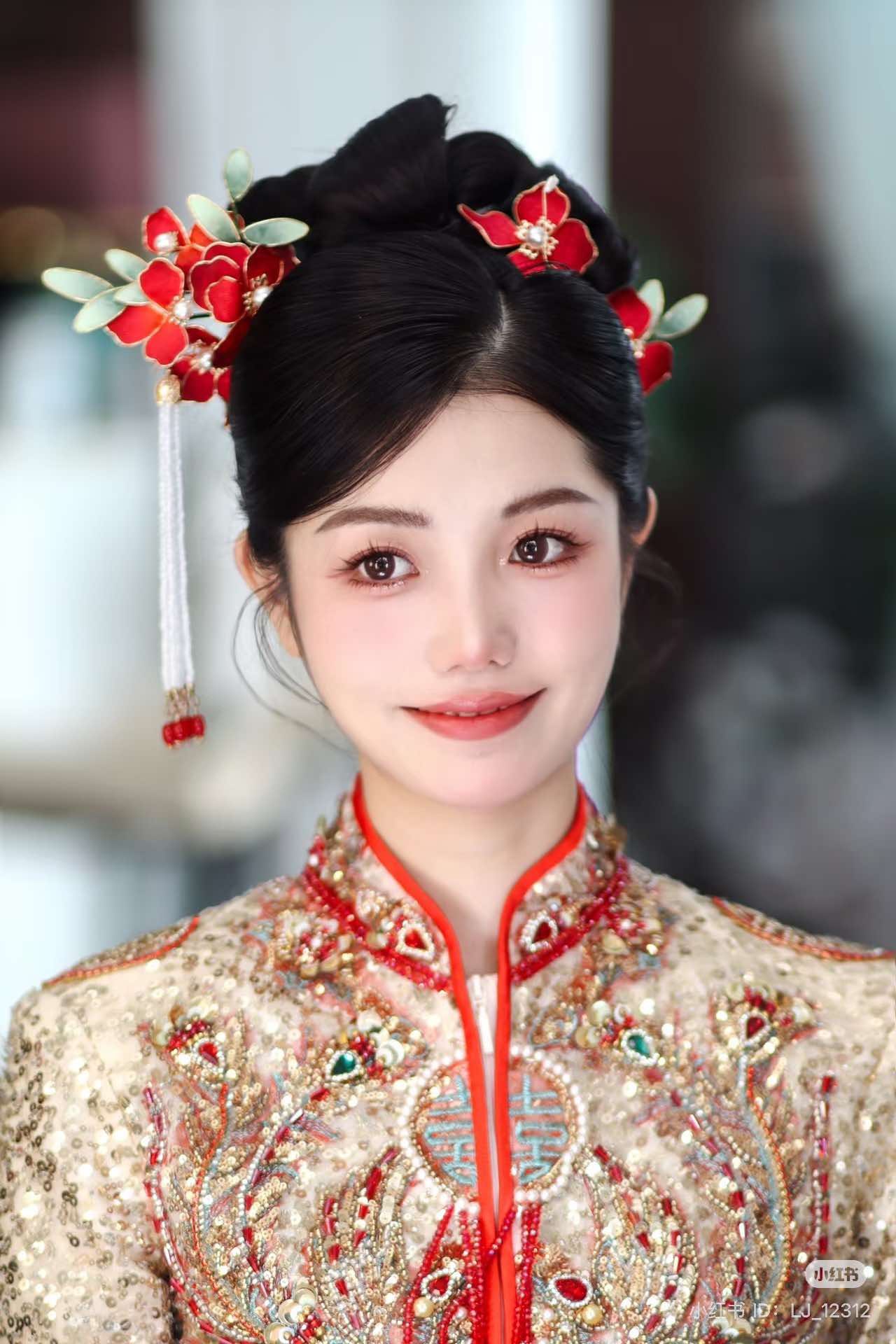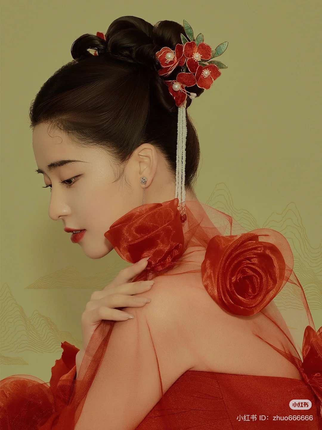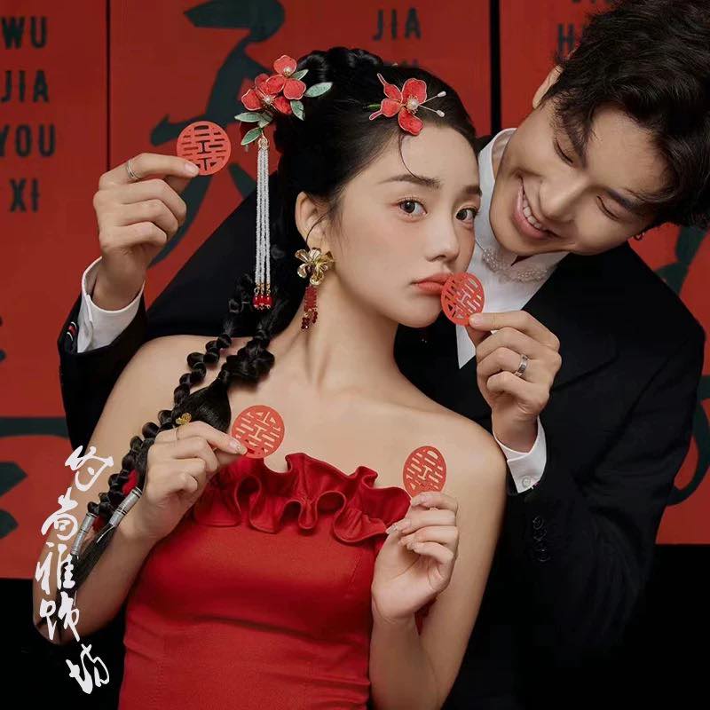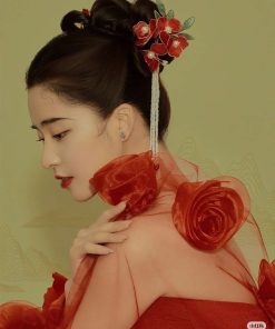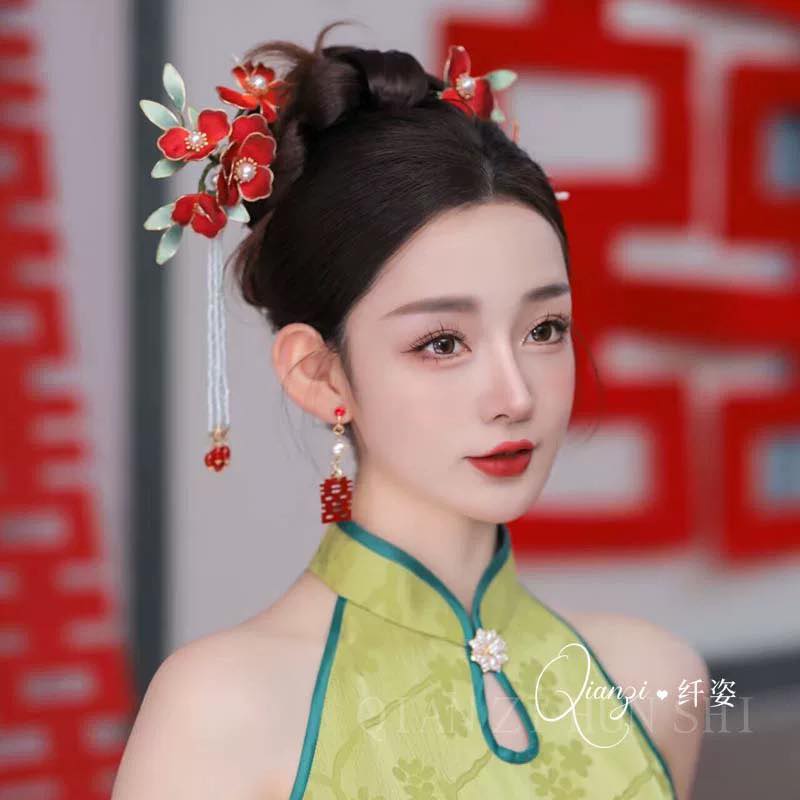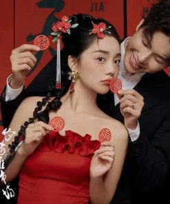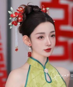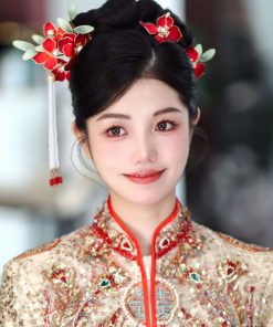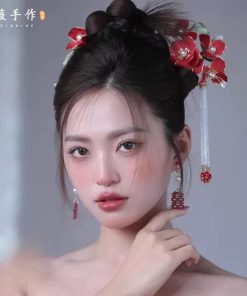 Set Trâm Chim Én Giấy Cắt Đỏ, Phụ Kiện Cô Dâu Màu Đỏ, Phụ Kiện Cưới – Không Bông Tai