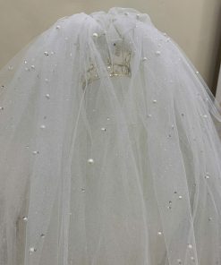 Voan Trắng 2 Lớp 60-80cm Đính Hạt Trai Và Nơ Màu Trắng –