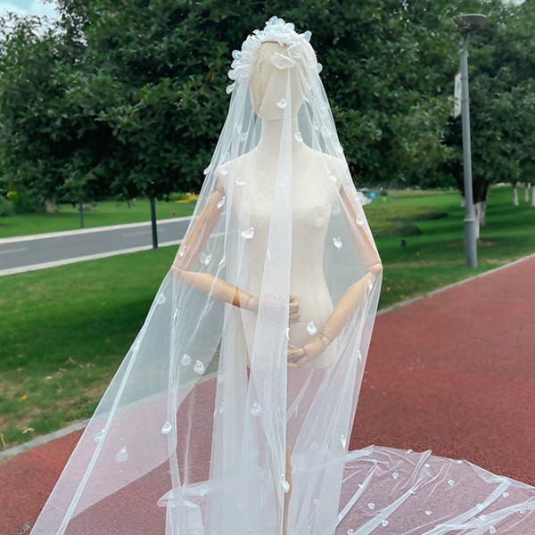 VOAN BỜM HOA KẾT CÁNH HOA ĐÍNH NGỌC 1 LỚP 300CM VOAN LÚP CÔ DÂU MÀU TRẮNG –