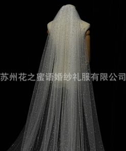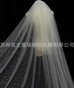 Voan Dài 1 Lớp Có Cài Đính Đá Và Ngọc Trai, Kích Thước 300cm, Voan Cài Tóc Cô Dâu Màu Trắng –