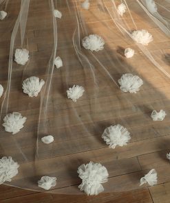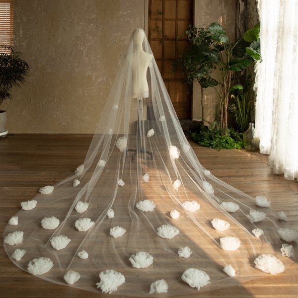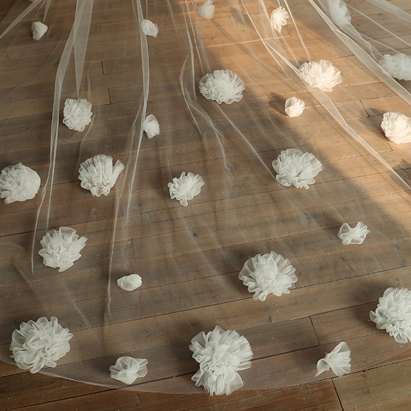 Voan Dài 1 Lớp Có Cài Đính Hoa 3D, Kích Thước 350cm, Voan Cài Tóc Cô Dâu Màu Trắng – Hoa To