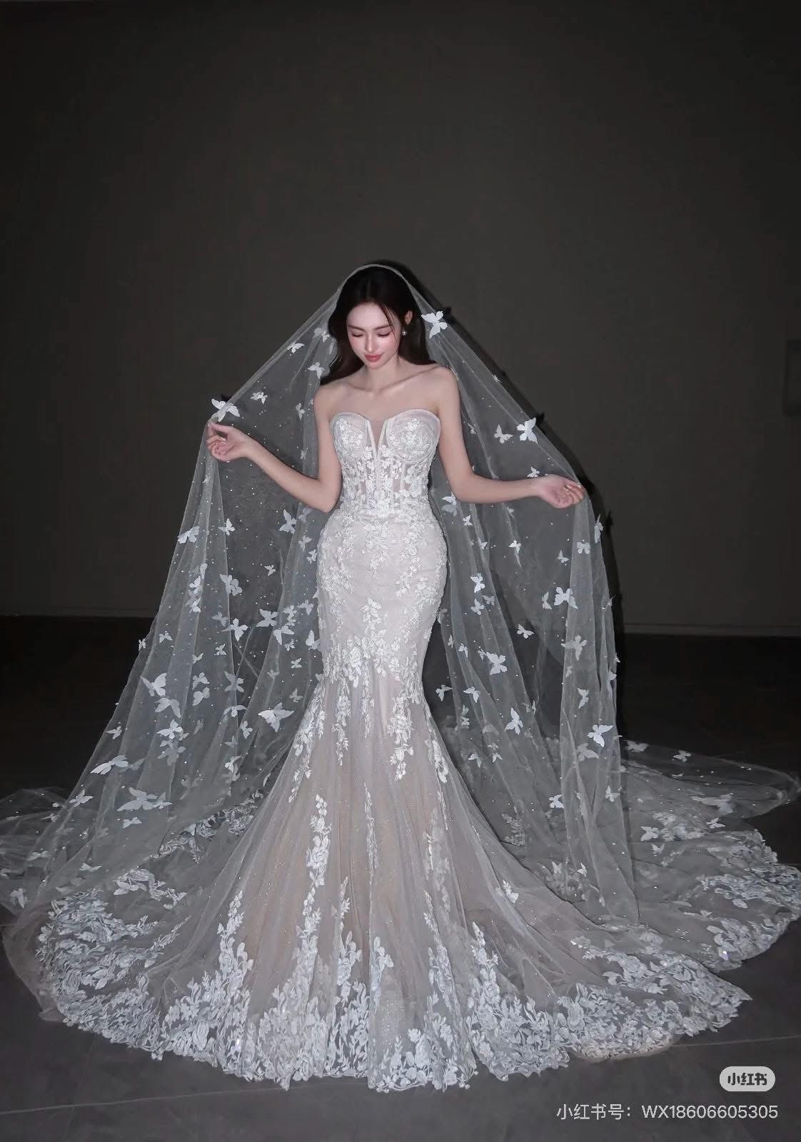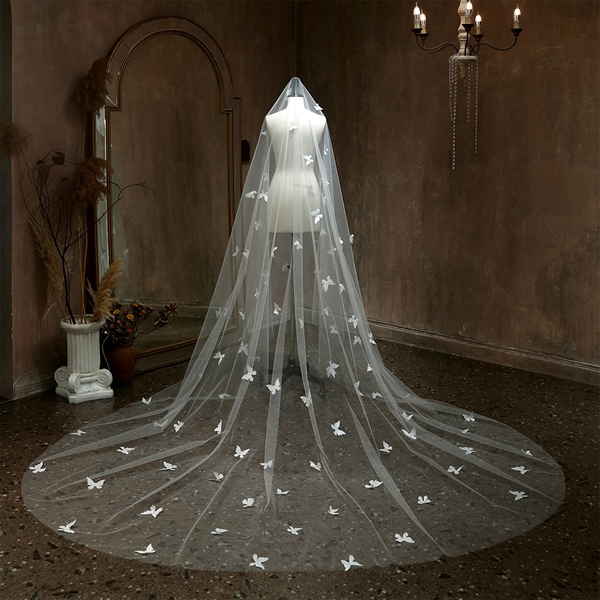 Voan Dài 1 Lớp Đính Hồ Điệp 3m, Phụ Kiện Cưới Cô Dâu, Phụ Kiện Chụp Hình –