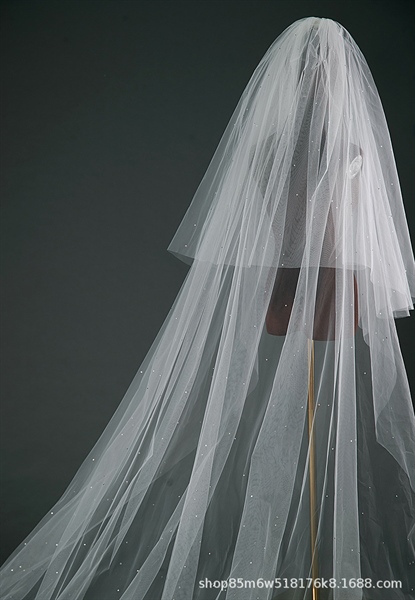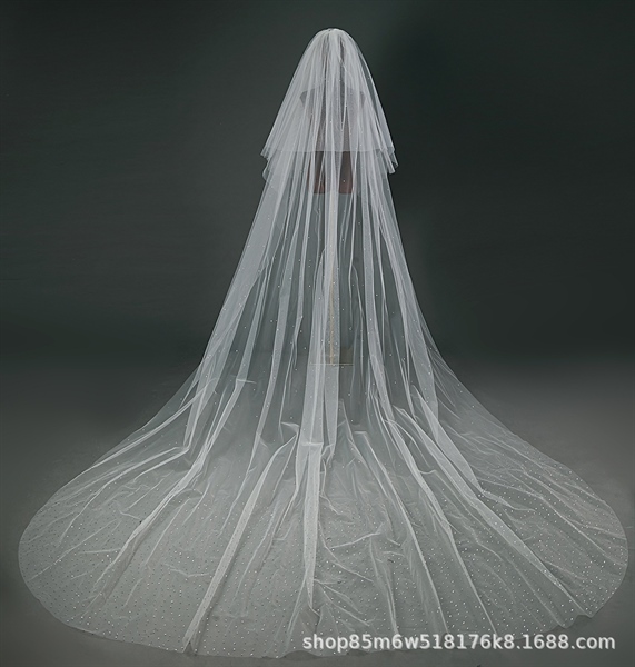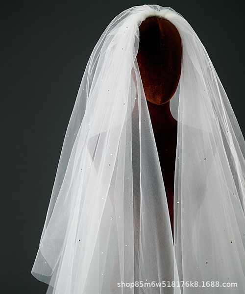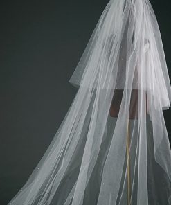 Voan Dài 2 Lớp Đính Đá, Kích Thước 80cmx350cm, Voan Cài Tóc Cô Dâu Màu Trắng Kem –