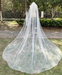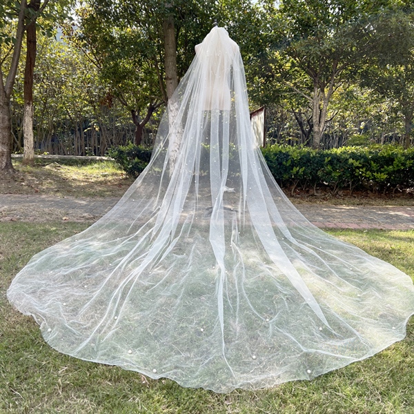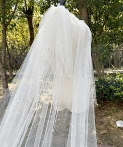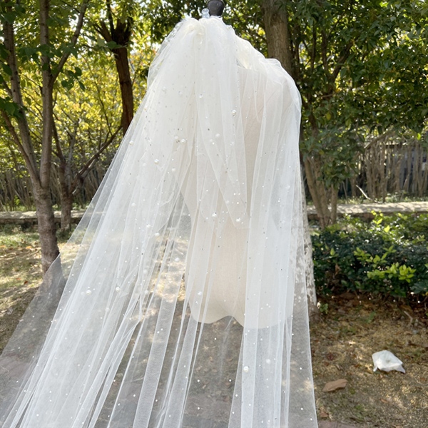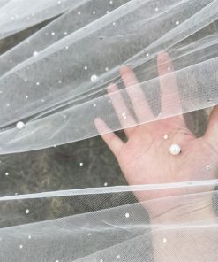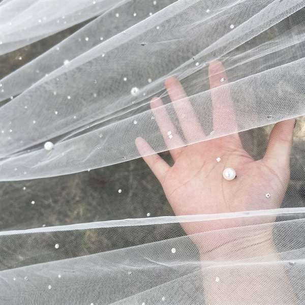 Voan Nhũ Phồng 2 Lớp Đính Cụm Ngọc Trai, Kích Thước 65cmx85cm, Voan Cài Tóc Cô Dâu Màu Trắng –