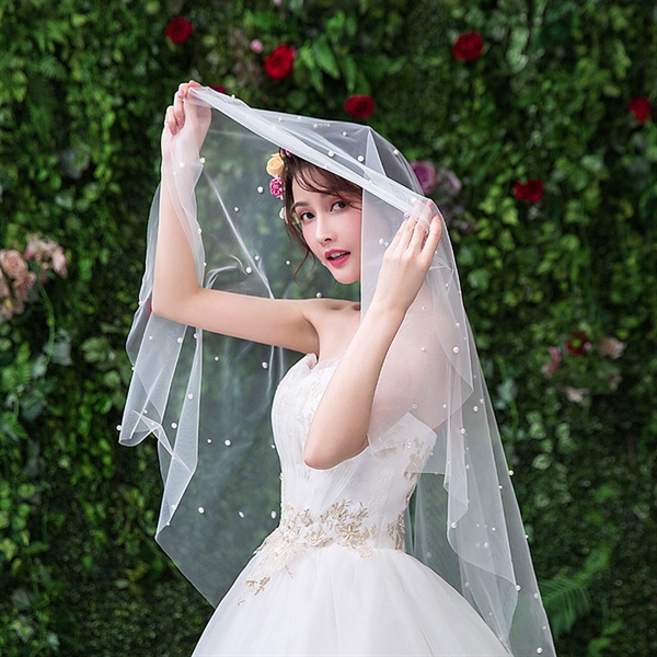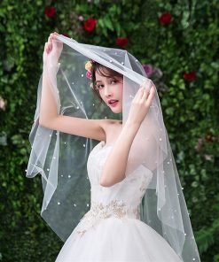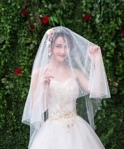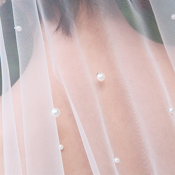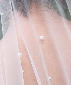 VOAN DÀI ĐÍNH HẠT TRAI 1 LỚP VOAN LÚP CÔ DÂU MÀU TRẮNG – 150cm Không Cài